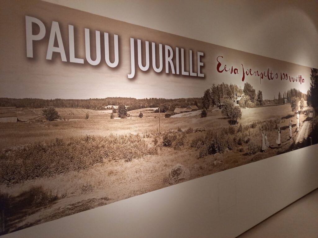 Paluu juurille – Eeva Joenpelto 100 vuotta -näyttely on Lohjan Museon, Lohjan kaupunginkirjaston ja WSOY:n kirjallisuussäätiön yhteistyössä toteuttama. Näyttely oli esillä Lohjan pääkirjaston Linderinsalissa 7.7.−11.9.2021 ja se oli osa Eeva Joenpelto 100 vuotta -juhlavuoden ohjelmaa. WSOY:n kirjallisuussäätiö on mahdollistanut näyttelyn tallentamisen virtuaalinäyttelyksi. Näyttelytekstit ovat pääosin kirjailija Marianna Kurton kirjoittamat, pois lukien Kaisa Rinteen Ei Kaarta ei kehää! -teksti sekä näyttelyn alkuun sijoitettu kirjailijaesittely elämäkerta- ja teostietoineen, jonka on koonnut Eeva Joenpelto -juhlavuoden koordinaattori Anna Mattila. Näyttelyn graafisesta ilmeestä on vastannut Luova toimisto MiljART. Muu visuaalinen suunnittelu ja rakentaminen ovat Lohjan Museon toteuttamaa. Näyttelyn virtuaaliseen muotoon on toteuttanut Joenrinne films. Osa näyttelystä on mahdollista lainata kiertonäyttelynä.