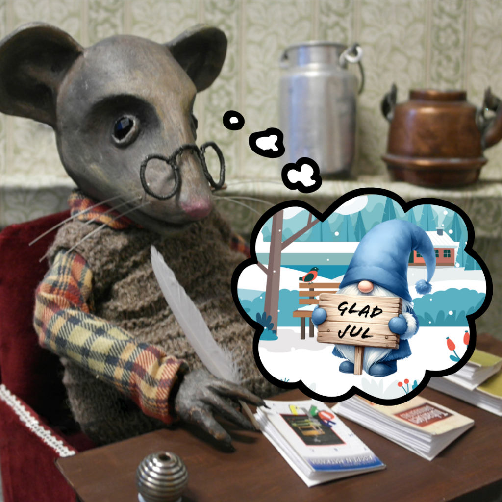 Musen Robban tycker om julprydnader. De kan vara av många olika slag: köpta i butiken eller något man har pysslat ihop hemma, röda, glittriga, av olika sorter!
