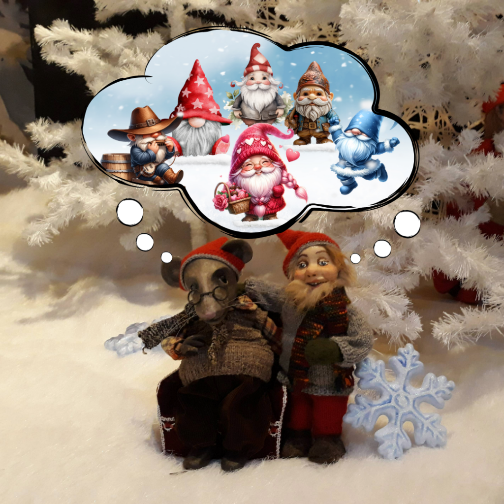 Tomt, tomt, tomten (Gå i ring hand i hand)tassade runt i skogen (Tassa runt i ringen)klättrade upp på ett berg (Gå mot mitten av ringen)vad såg han där? (Hitta på vad tomten ser)HUUUU! (Spring er väg)