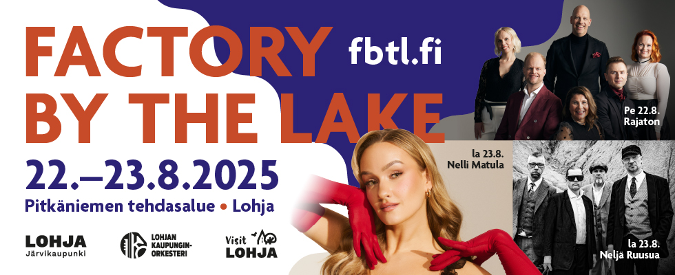 Factory by the Lake eli FBTL-festivaali järjestetään toista kertaa Lohjalla upeassa tehdasmiljöössä Lohjanjärven rannalla osoitteessa Kotkantie 5, alueella, joka on aiemmin ollut suljettuna yleisöltä.