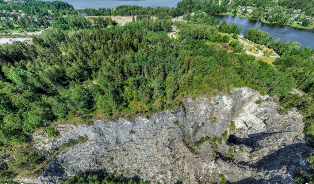 Ilmakuva avolouhoksesta Hiidensalmeen päin. Linkki 360-kuvaan.