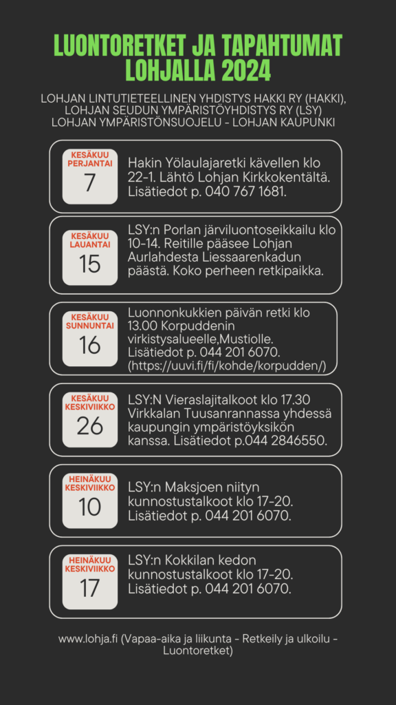 Luontoretket ja tapahtumat Lohjalla kesällä 2024  (linkki esitteeseen)