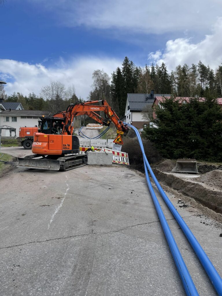 Lohja saneeraa putkiverkostoaan nyt vastuullisilla, täysin hiilivapailla sujutusputkilla 7.8.2023 Lohjan kaupungin päästövähennystavoitteet näkyvät vesi- ja viemärilaitoksessa esimerkiksi nykyaikaisina materiaalivalintoina. Vastuullisilla tuote- ja materiaalivalinnoilla suuri vaikutus päästövähennyksiin Olemassa olevan infrastruktuurin ylläpito ja huolto ovat kuntien ja kaupunkien tärkeitä, mutta usein vähälle huomiolle jääviä tehtäviä, jotka mahdollistavat arjen sujuvan toiminnan. Korjaus ja rakentaminen ovat kuitenkin myös merkittäviä päästönlähteitä. Muovien, metallien, asfaltin ym. rakentamisessa ja korjaamisessa tyypillisesti hyödynnettävien materiaalien käyttö vapauttaa ilmakehäämme paljon haitallisia hiilipäästöjä. Materiaalivalinnoilla on tämän vuoksi suuri rooli kasvihuonekaasupäästöjen vähentämisessä. Jo yksittäisen vastuullisen materiaalin valinta (uusiutuvasta tai kierrätysmateriaalista valmistettu tuote) voi vaikuttaa huomattavasti urakan kokonaispäästöihin. Lohjan kaupungin yksiköissä pyritään hyödyntämään ympäristöystävällisiä vaihtoehtoja koko ajan enemmän. Tarjonnan, tiedon ja osaamisen lisääntyessä valinta kohdistuu entistä useammin vähäpäästöiseen vaihtoehtoon. Myös kaupungin vesi- ja viemärilaitos on mukana kehityksessä, ja uudenlaisia ympäristöystävällisempiä vaihtoehtoja pyritään valitsemaan aina mahdollisuuksien mukaan. Putkiston saneerausurakoihin valittiin hiilivapaat PE-putket Vesilaitos on keväästä alkaen tehnyt putkiston saneeraustöitä Lempolassa, Asema- ja Rautatienkadulla sekä Karstuntiellä. Sujutusmenetelmässä vanhojen putkien sisään asennetaan uudet putket, mikä säästää resursseja perinteiseen putkistosaneeraukseen verrattuna. Kyseisiin sujutusurakoihin valittiin tällä kertaa Sujutek Oy:n toimittamat täysin hiilivapaat sujutusputket, jotka on valmistettu 100% kierrätys- ja uusiomateriaaleista. Vastuullisten PE-putkien käyttäminen säästää huimat 29 750 kg CO2 verrattuna perinteisiin putkiin, mikä vastaa lähes 210 000 autoilukilometrin synnyttämiä päästöjä. Hiilivapaiden sujutusputkien käyttö on osa Lohjan kaupungin HINKU-toimenpiteitä. Lohja liittyi Kohti hiilineutraalia kuntaa (HINKU)-verkostoon 2013 vuoden alussa ja tähtää 80% päästövähennyksiin vuoteen 2030 mennessä verrattuna 2007 vuoden tasoon. Vastuullinen ja ilmastoystävällinen toiminta on myös osa Lohjan kaupunkistrategiaa 2023-2030. Sujutuksessa käytetyt hiilivapaat putket vähentävät saneeraustöistä aiheutuvia päästöjä vuonna 2023 lähes 30 000 CO2 kg.