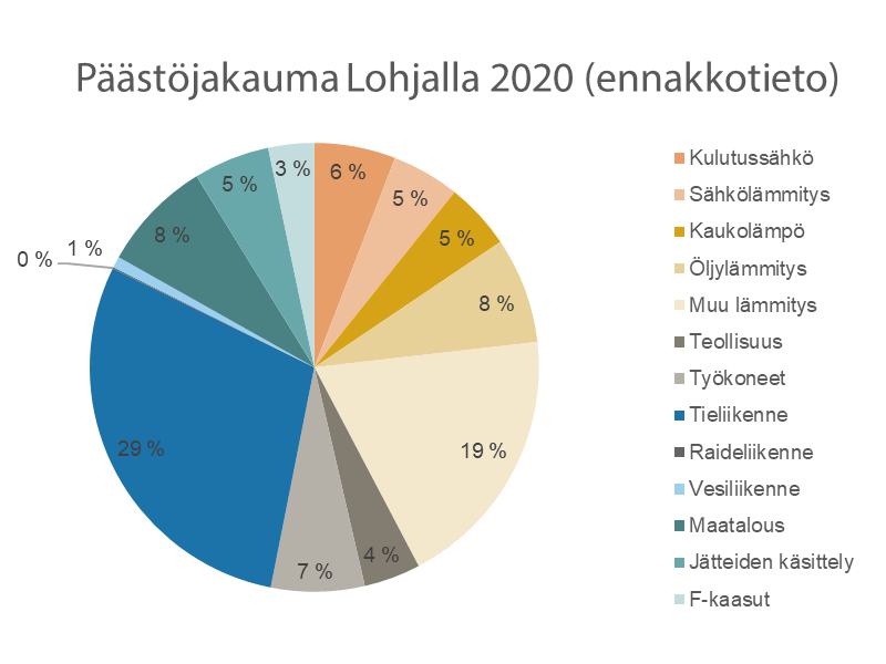 Lohjan ilmastopäästöt vähenivät 4,1 prosenttia vuonna 2020 23.8.2021 Suomen ympäristökeskus (SYKE) on julkaissut ennakkotietolaskelman kuntien kasvihuonekaasupäästöistä vuonna 2020. Sen mukaan Lohjan ilmastopäästöt vähenivät 4,1 prosenttia vuoteen 2019 verrattuna. Uudenmaan alueella kuntien yhteenlasketut ilmastopäästöt vähenivät vuonna 2020 jopa 12,1 prosenttia. Suomen kaikkien kuntien yhteenlasketut ilmastopäästöt vähenivät 7,4 prosenttia. SYKEn ennakkotietolaskelman mukaan Lohjan kasvihuonekaasupäästöt olivat yhteensä 297 kilotonnia hiilidioksidiekvivalenttia (CO2e) vuonna 2020. Asukasta kohti laskettuna päästöt olivat 6,5 tonnia CO2e vuonna 2020. Tämä oli neljä prosenttia vähemmän kuin vuonna 2019. Myönteinen päästökehitys on havaittavissa myös pidempää aikaväliä tarkasteltaessa. Päästöt ovat vähentyneet lähes kaikissa Suomen kunnissa vuosina 2005—2020, jolloin keskimääräinen muutos on ollut -24 prosenttia. Lohjalla päästöt ovat vähentyneet tänä aikana 22 prosenttia. Hinku-hankkeen vertailuvuoteen 2007 nähden Lohjan päästöt ovat vähentyneet 30 prosenttia. Sähkön käytön, öljylämmityksen ja liikenteen päästöt laskussa Vuoden 2020 päästölaskennassa näkyy selvästi aiempaa vahvemmin tuulivoiman tuotannon lisääntyminen Suomessa. Sähkön kansallisen päästökertoimen pieneneminen vaikuttaa hyvin edullisesti myös Lohjan päästökehitykseen: Lohjalla, kuten muuallakin Suomessa, suurin pudotus tapahtui sähkön käytön päästöissä (-21 %). Sähkön käytön päästöjä laski paitsi siirtymä fossiilisten polttoaineiden käytöstä tuulivoimaan myös lämpimän vuoden seurauksena laskenut lämmityssähkön kulutus. Positiivinen kehitys näkyy myös öljylämmityksen osalta: päästöt vähenivät Lohjalla 15 prosenttia (Uudellamaalla 12 prosenttia, koko maassa 9 prosenttia). Tämä kertoo siitä, että alueella on entistä innokkaammin muutettu vanhoja öljylämmityksiä vaihtoehtoisiin lämmitystapoihin kuten maalämpöön. Tieliikenteen päästöt vähenivät Lohjalla ja koko Uudellamaalla 7 prosenttia (koko maassa 6 prosenttia). – Oletettavaa on, että osa päästövähennyksistä tapahtui poikkeuksellisen koronavuoden seurauksena. Esimerkiksi tieliikenteessä päästöt vähenivät pääosin ajosuoritteiden laskun vuoksi, mutta myös ajoneuvokannan energiatehokkuuden paranemisen ja sähköistymisen vaikutukset alkavat näkyä vähitellen, sanoo laskennasta vastaava erikoistutukija Santtu Karhinen SYKEstä. – Koronavuoden seurauksia päästökehitykseen ei voida esittää suoraan, mutta poikkeusolojen vaikutuksia on mahdollista johtaa sähkön käytön, vesiliikenteen ja teollisuuden päästökehitykseen, Karhinen jatkaa. Rakennusten lämmitys, tieliikenne ja maatalous suurimmat päästölähteet Lohjalla Vuonna 2020 eniten päästöjä Lohjalla aiheutui rakennusten lämmityksestä (36 %), tieliikenteestä (29 %) ja maataloudesta (8 %). Uudellamaalla kolme merkittävintä päästölähdettä olivat rakennusten lämmitys (38 %), tieliikenne (31 %) ja kulutussähkö (11 %). Koko maassa suurimmat päästölähteet olivat rakennusten lämmitys (30 %), tieliikenne (26 %) ja maatalous (20 %). Kasvihuonekaasupäästöjen jakauma Lohjalla vuonna 2020 (ennakkotieto). SYKE laskee päästöt kaikille Suomen kunnille SYKEn päästölaskentajärjestelmä ALas kattaa kaikki Suomen kunnat ja 80 päästösektoria. Kaikille kunnille ja sektoreille lasketaan päästöt ja energiankulutus vuosittain. Tällä hetkellä lopulliset päästötulokset ovat saatavissa vuosille 2005—2019. Viimeisimmän vuoden lopullisten tulosten julkaisuviive on noin 1,5 vuotta. Nyt julkaistu alueellisten kasvihuonekaasupäästöjen ennakkotietolaskenta (ALasPre) toteutettiin ensimmäistä kertaa ALas-järjestelmässä. Julkaisun tarkoituksena on parantaa laskentajärjestelmän ajantasaisuutta tarjoamalla ennakkoon tietoa päästöjen kehityssuunnasta ennen keväällä 2022 tapahtuvaa vuoden 2020 lopullisten tilastojen julkaisua. Lisätietoa Suomen kaikkien kuntien päästölaskelmiin voi tutustua vapaasti hiilineutraalisuomi.fi-sivustolla. Suomen ympäristökeskuksen uutinen kuntien päästölaskennan vuoden 2020 ennakkotiedoista (hiilineutraalisuomi.fi) Erikoistutkija Santtu Karhinen, Suomen ympäristökeskus, puh. 029 525 1889, etunimi.sukunimi@syke.fi