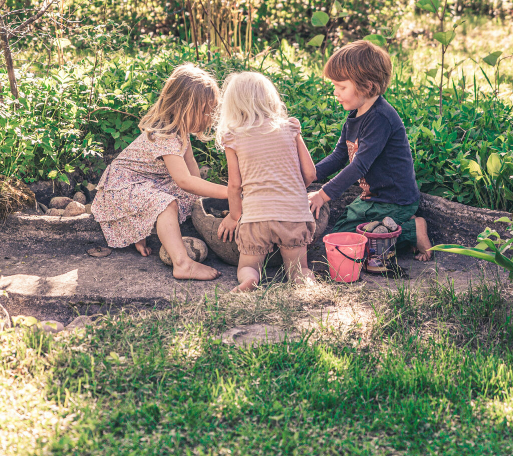 Lapsia leikkimässä kivillä