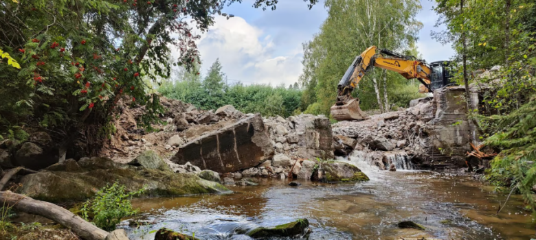 kuva: Juha-Pekka Saarelainen, Watec Consulting Oy, Töllin padonpurkutyömaa tiistaina 27.8.2024.
