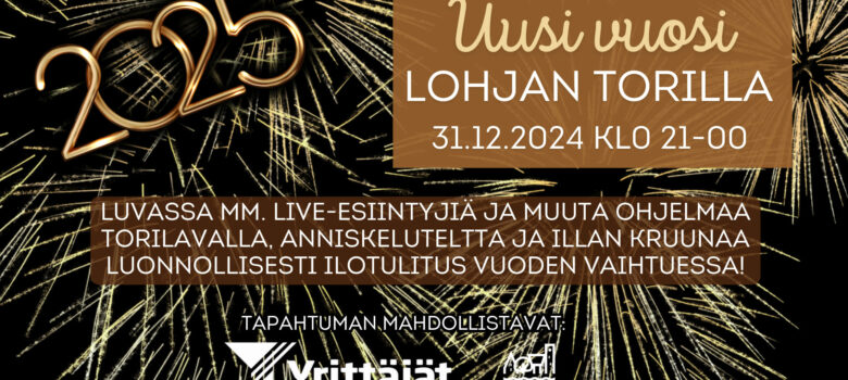Tervetuloa viettämään kanssamme uutta vuotta Lohjan torille tiistaina 31.12.2024 klo 21–00. Lohjan kaupunki ja Lohjan Yrittäjät järjestävät tapahtuman yhteistyössä.