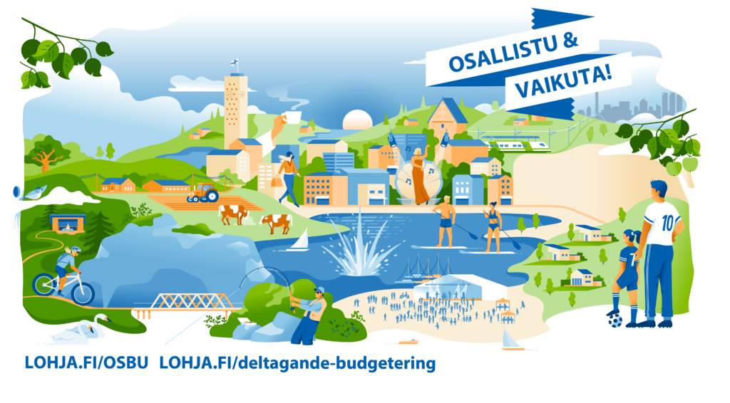 Etsimme lohjalaisilta osallistuvaan budjetointiin ideoita, joiden avulla kehittää Lohjaa entistä elinvoimaisemmaksi kunnaksi. Osallistuvan budjetoinnin tavoitteena on toteuttaa kaikenikäisiä yhteisesti hyödyttäviä asioita koko Lohjan alueella. Osallistuvaan budjetointiin on varattu vuoden 2025 talousarviosta 50 000 euroa, ja sen käytöstä päättävät kuntalaiset.