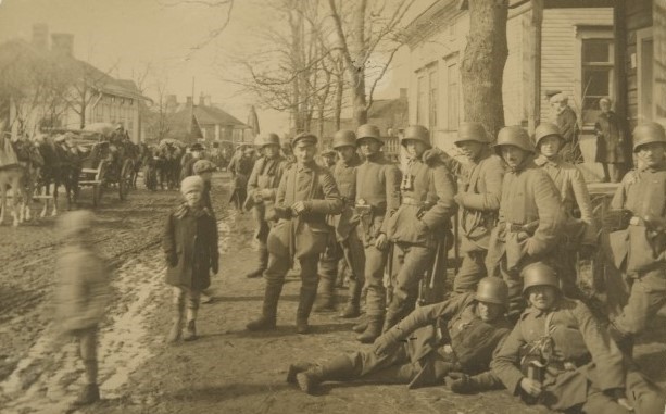 Saksalainen Itämeren divisioona, joka käsitti yli 9 000 miestä nousi maihin Hangossa 3.4.1918. Saksalaisten pääjoukosta eronnut tiedusteluosasto jatkoi kulkuaan Lohjan suuntaan. Kuvassa saksalaisjoukkoja Maulan kaupan kohdalla Suurlohjankadulla 9.4.1918. Koska eteneminen Nummelan suuntaan oli tukossa, Lohjalta saksalaiset lähtivät 16.4 takaisin Karjaan suuntaan ja sieltä etenemään kohti Kotkaa. Tuolloin Helsinki oli jo saksalaisten hallussa. Saksalaisten lähdettyä punaiset ottivat vielä vajaaksi viikoksi Lohjan hallintaansa, kunnes valkoiset ottivat vallan Lohjalla 23.4.