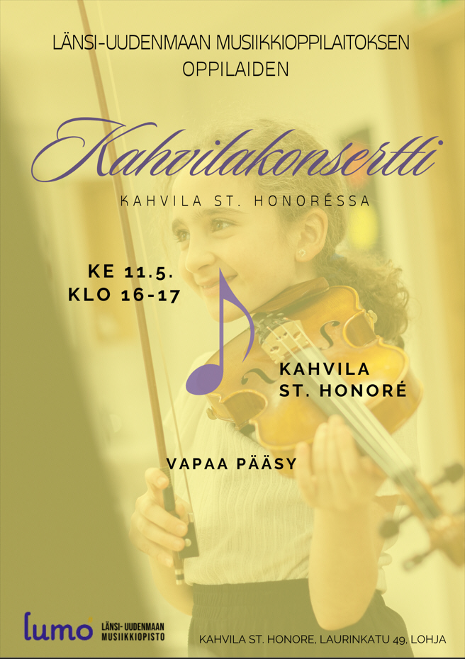 Oppilaamme esiintyvät maineikkaassa kahvila St. Honoréssa, (Laurinkatu 49,Lohja)  keskiviikkona 11.5. klo 16.