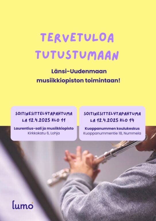 Tervetuloa tutustumaan Länsi-Uudenmaan musiikkiopiston toimintaan, musiikin harrastamiseen ja erilaisiin soittimiin!
