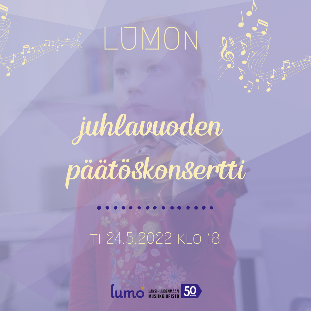 Tiistaina 24.5.2022 juhlitaan musiikkiopistomme 50-v juhlavuoden päätöstä klo 18.00 Laurentius-salissa  juhlavuoden päätöskonsertin merkeissä.