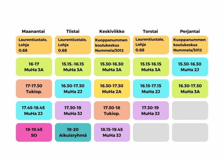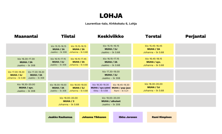 Länsi-Uudenmaan musiikkiopiston musiikinhahmotus muha-ryhmiin liittyvät kysymykset: johanna.tikkanen@edu.lohja.fi ja jaakko.rauhamaa@edu.lohja.fi.