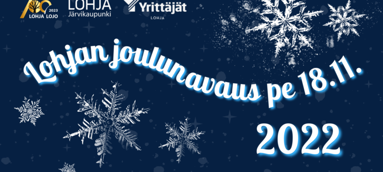 Lohjan joulunavaus 2022 14.10.2022 Lohjan kaupunki ja Lohjan Yrittäjät ry järjestävät joulunavauksen pe 18.11.2022. Perinteinen soihtukulkue lähtee liikkeelle noin klo 17.45 Kirkkokentältä. Kauniit jouluvalot sytytetään Laurinkadulle kulkueen edetessä kohti Lohjan toria. Torilla järjestetään ohjelmaa klo 18.00 alkaen. Mukana mm. Virkkalan Torvisoittokunta, Akroteam Lohja sekä tietenkin Joulupukki. Tapahtuma huipentuu ilotulitukseen!