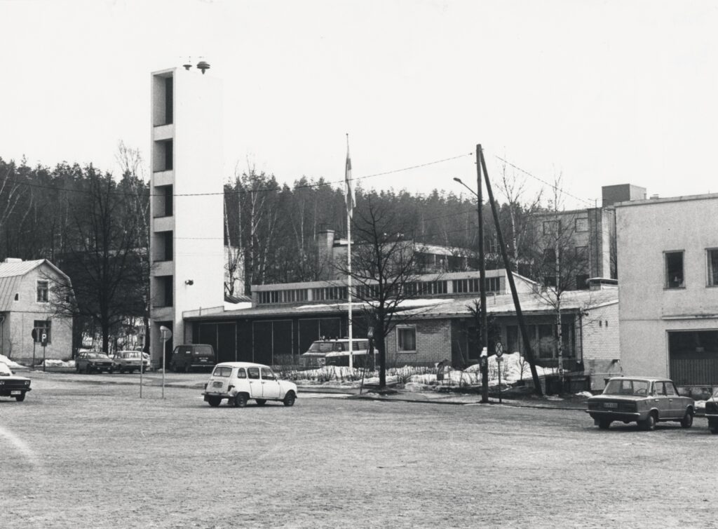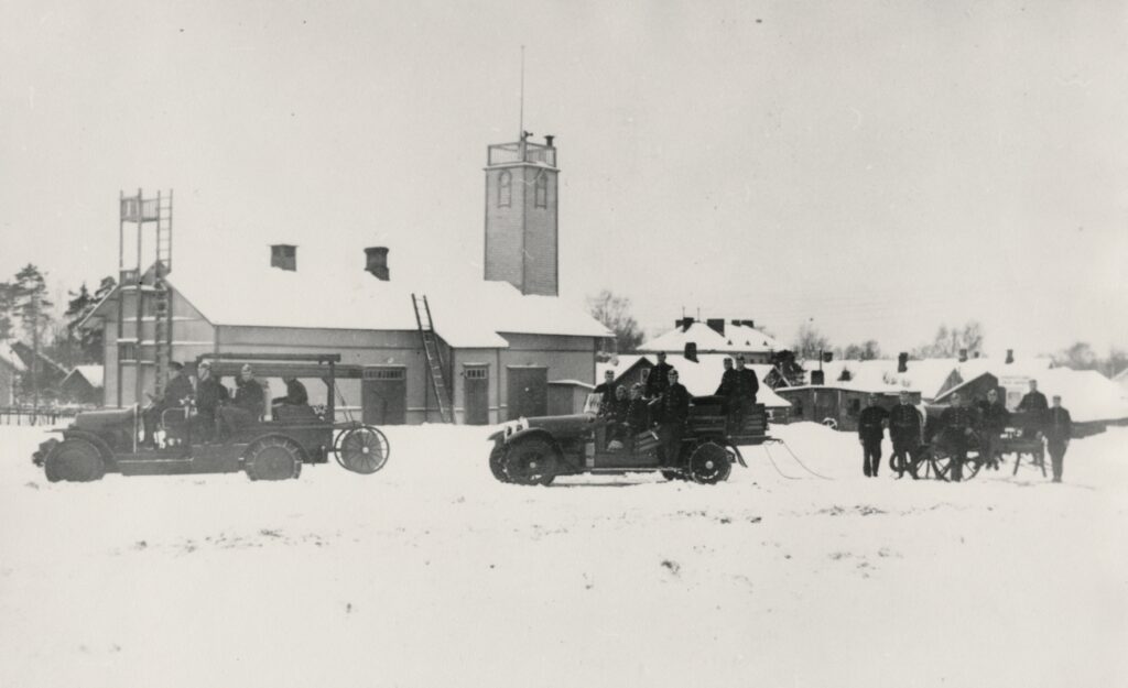 När den gamla brandstationen revs, samlades mycket folk på torget för att följa med skeendet. Runt tornet fästes ett rep, som knöts fast i bakändan på en lastbil. Bilen startades och så drogs tornet omkull.