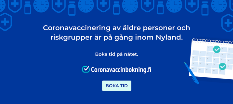 Coronavaccinationerna av personer som hör till riskgrupperna börjar i Lojo på onsdag den 17 februari 11.2.2021 Personer i åldern 65–69 år som hör till riskgrupp 1 står i tur att vaccineras. Coronavaccinationerna utvidgas till andra åldersgrupper och riskgrupper när fler vacciner blir tillgängliga. THL publicerade vaccinationsordningen för personer i åldern 18-69 år som hör till de medicinska riskgrupperna i början av februari. Riskgrupperna definieras mer detaljerat på THL:s webbplats www.thl.fi/koronarokote. Om du är en Lojobo i åldern 65-69 år (född åren 1952–1956) och hör till den medicinska riskgruppen 1, kan du boka tid från fredag 12.2. för coronavaccination. RISKGRUPP 1 Till den medicinska riskgruppen 1 hör personer med en sjukdom eller ett tillstånd som mycket kraftigt ökar risken för svår covid-19: – Organtransplantation eller stamcellstransplantation– Cancersjukdom under aktiv behandling– Svår störning i försvarssystemet– Svår kronisk njursjukdom– Svår kronisk lungsjukdom– Läkemedelsbehandlad typ 2-diabetes– Downs syndrom (vuxna) VACCINATIONER OCH TIDSBOKNING Vaccinationer av personer i åldern 65-69 år som hör till den medicinska riskgruppen 1 börjar på Sportcentret Tennari på onsdag den 17 februari. På Sportcentret Tennari finns flera vaccinationslinjer redo att vaccinera kommuninvånare. Dessutom kommer vaccinationer att ges på Pusula hälsostation från vecka 8. Den elektroniska tidsbokningen öppnas 12.2.2021 på adressen www.koronarokotusaika.fi Dessutom kan personer som hör till riskgrupperna boka tid för vaccination från och med 12.2.2021 via rådgivningstelefonen på Lojo hälsostation, tfn 019 369 2319 (mån, tis, tors kl. 8-15 och ons, fre kl. 8-13.30.) Vi ser gärna att så många som möjligt använder den elektroniska tidsbokningen, eftersom rådgivningstelefonen tar emot alla samtal som hänför sig till handledning, rådgivning och tidsbokning på hälsostationen. För veckorna 7 och 8 är cirka 650 tider tillgängliga för vaccinationer av riskgrupper. Tillgången på vacciner är fortfarande begränsad. Om inga tider visas i den elektroniska tidsbokningen är alla tider bokade och nya tider kan inte heller bokas per telefon. Nya tider öppnas varje vecka när fler vacciner blir tillgängliga. Att man hör till en riskgrupp som berättigar till en coronavaccination kontrolleras före vaccinationen. Rätten till koronavaccinet kontrolleras från ersättningsnumret på FPA-kortet. Vid behov kan rätten kontrolleras i patientdatasystemet. Om du inte i det här skedet hör till den grupp som är berättigad till coronavaccination, ska du inte boka tid för dig själv! ANDRA ÅLDERSGRUPPER OCH RISKGRUPPER Coronavaccinationerna utvidgas till andra åldersgrupper och riskgrupper när fler vacciner blir tillgängliga. Tider ges endast till de personer som står i tur att vaccineras. Om du inte hör till de ovanstående grupperna ber vi att du väntar på din tur och inte ännu ringer till tidsbokningen så att tjänsten inte blir överbelastad. Lojo stad informerar om vaccinationsläget varje vecka. Lojo stad fortsätter med att ringa till Lojobor över 85 år och äldre och de kallas personligen till coronavaccination. Det är också möjligt för personer över 85 år att boka en vaccinationstid elektroniskt eller per telefon från vecka 8 beroende på tillgången på vacciner. ANKOMST TILL SPORTCENTRET TENNARI Sportcentret Tennari finns på adressen: Strandparken 45, 08100 Lojo. Det finns gott om parkeringsplatser på sportcentrets gård. Från Lojo busstation tar det cirka 15 minuter att promenera till Tennari. Närmaste busshållplats för dem som anländer från Sammatti och Karislojo är ”Tytyri E”. Ingång till vaccinationsstället i Tennari via huvudentrén. ANVISNINGAR TILL DEM SOM KOMMER FÖR VACCINATION · Kom ihåg att boka tid för vaccination först! · Kom endast om du är helt frisk · Håll avstånd och god handhygien · Använd munskydd både när du kommer och på vaccinationsstället · Kom så nära din bokade tid som möjligt · Ta med ditt FPA-kort · Klä dig i en tröja som är lätt att ta av · Räkna med att du ska stanna kvar på vaccinationsstället i cirka 15 minuter efter att du har fått vaccinet. · Om du inte kan röra dig på egen hand kan du ta med en ledsagare. Obs! Förbered dig på att visa på vilken grund du hör till riskgruppen, som till exempel med ditt FPA-kort eller ett läkarutlåtande