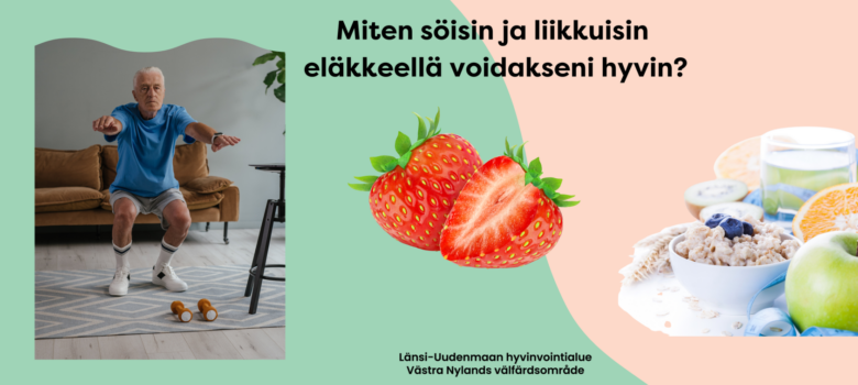 Informationsinslag om de äldres välbefinnande: motion och kost 4.10.2023 Västra Nylands välfärdsområde organiserar informationsinslagen om äldres välbefinnande som behandlar näring, motion, en trygg, rusmedelsfri och våldsfri vardag samt psykiskt välbefinnande. Kom till Salonki-rummet på tredje våningen i Esbos Lippulaivabibliotek för att lyssna. Du kan också följa informationsinslagen via distansförbindelse. Informationsinslagen är avgiftsfria och öppna för alla. 12.10.2023 kl. 13–14 Motion och kost som stöder den äldres välbefinnande Hur äter jag och hur rör jag på mig som pensionerad för att må bra? Hurdan är en bra och mångsidig kost för att jag ska må bra?Vad är förnuftig rörlighet och vad är inte det? Kom till Salonki-lokalen i Esbos Lippulaivabibliotek den 12 oktober 2023 kl. 13–14 för att få tips som baserar sig på forskningsdata om föda och rörlighet för personer i pensionsåldern. Det är fritt inträde till informationsinslaget och det är öppet för alla. Du kan också följa informationsinslagen via fjärranslutning. Du har möjlighet att kommentera och ställa frågor på plats eller på distans. Informationsinslaget sparas och textas i efterhand. Informationsinslagets inspelning finns inom två veckor på Västra Nylands välfärdsområdes YouTube. Tid: 12.10.2023 kl. 13–14 Plats: Lippulaivabibliotekets Salonki-lokal (3:e våningen, gaveln mot Prisma), Esboviksgatan 8, 02320 Esbo eller på distans: https://vimeo.com/event/3699764 Evenemangen hålls på finska. Program 13–13.05 Välkomstord: Salla Mustonen, näringsterapeut, Västra Nylands välfärdsområde 13.05–13.40 Hurdan är kost som stöder den äldres funktionsförmåga och motion som ger välbefinnande? Föredragande är idrottsplanerare Esa Yletyinen, Esbo stad, sakkunnig Ritva-Liisa Salonen, Äldreinstitutet och näringsplanerare Martta Jalavisto, Gery ry. 13.40–13.55 Gemensam diskussion med lyssnarna 13.55-14.00 Informationsinslagens avslutningsord, Salla Mustonen, näringsterapeut, Västra Nylands välfärdsområde Arrangörer: Västra Nylands välfärdsområde, Esbo stad, Äldreinstitutet och Gery ry.