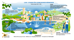 Lojos nya stadsstrategi godkändes vid stadsfullmäktiges sammanträde den 14 december 2022. Utgångspunkten för utarbetandet av strategin var att bearbeta Lojos gällande strategi till en tät helhet som stödjer Lojo stads tillväxt och utveckling. Den nya strategin innehåller stadens gemensamma strategiska mål på vilka sektorerna/resultatområdena bygger sina egna konkreta mål på. Ur de här målen härleds i sin tur årligen verksamhetsmålen i budgeten. I utarbetandet av strategin delaktiggjordes utöver stadsledningen och förtroendevalda även personalen, kommuninvånarna och övriga intressegrupper.