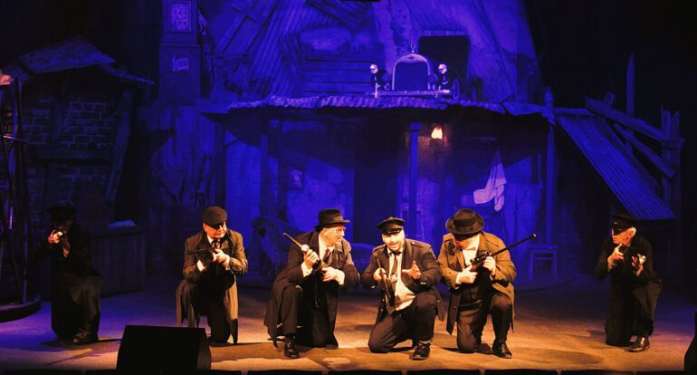 Esityksen kesto noin 2,5 h sis. väliaika 20 min.Ei suositella alle 13-vuotiaille.Sisältää strobovaloja, teatterisavua sekä väkivaltakohtauksia.