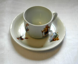 Lastenkuppi muistuttaa S-mallia. Koristeena kupissa on ruusu. Pohjassa leima on kulunut käytännössä katsoen olemattomiin, mutta se on ollut tornileima. Valitettavasti ei ole mahdollista sanoa kumpi tornileima on kysessä. Niinpä kuppi on ajoitettavissa vuosiin 1917‒1932.