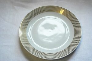 Lautanen on Ulla Procopén suunnittelemaa D-mallia. Kultaraitaisen Jaana-koristeen on suunnitellut Raija Uosikkinen. Jaanalla koristeltu D-malli oli tuotannossa 1958–1966.