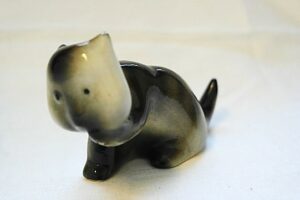 Koristekissa nuolee käpäläänsä. Figuurin on suunnitellut Michael Schilkin ja se on maalattu käsin. Leiman perusteella kissafiguuri on valmistettu 1949–1964.