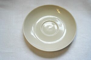 Lautanen on RNA-mallia, jonka suunnitteli Kaj Franck. Lautaseen kuuluneen kupin nimi on Sointu. Sointua valmistettiin sävyposliinista luunvärisen lisäksi myös rosana, sinisenä, vihreänä ja harmaana. Malli oli tuotannossa 1951–1961, miltä ajalta on myös tämä lautanen.