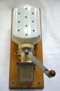 Seinälle ripustettavien kahvimyllyjen säiliöt on Arabia tehnyt todennäköisesti alihankintana kahvimyllyjen valmistajalle. Mylly on valmistettu 1900-luvun alkupuolella, mutta tarkkaa valmistusaikaa on vaikea määrittää.
