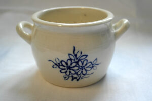 Ruukku on B-mallia, joka oli tuotannossa yhtäjaksoisesti 1883‒1953. Ruukussa on kukka-aiheinen koriste. Piippuleiman perusteella ruukku on valmistettu 1932‒1949. Kaikkiaan B-mallin ruukkuja valmistettiin yhdeksää eri kokoa. Ruukut maalattiin alkuaan käsin, mutta suosituimpien kokojen kohdalla siirryttiin jossakin vaiheessa kumileimasin kuviointiin. Tarkkaan ei kuitenkaan tiedetä, milloin siirtymä tapahtui, sillä Arabian hinnastoissa puhutaan vain sinimaalauksesta eikä tarkkaa tekniikkaa mainita.