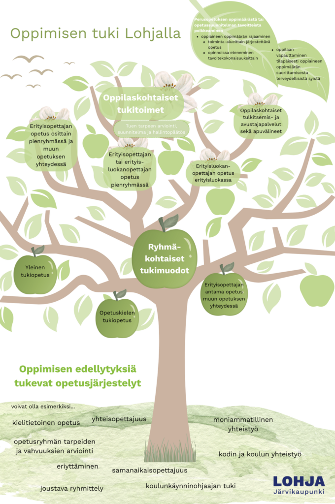 Julisteessa on kuvattu oppimisen tuen järjestämistä Lohjalla